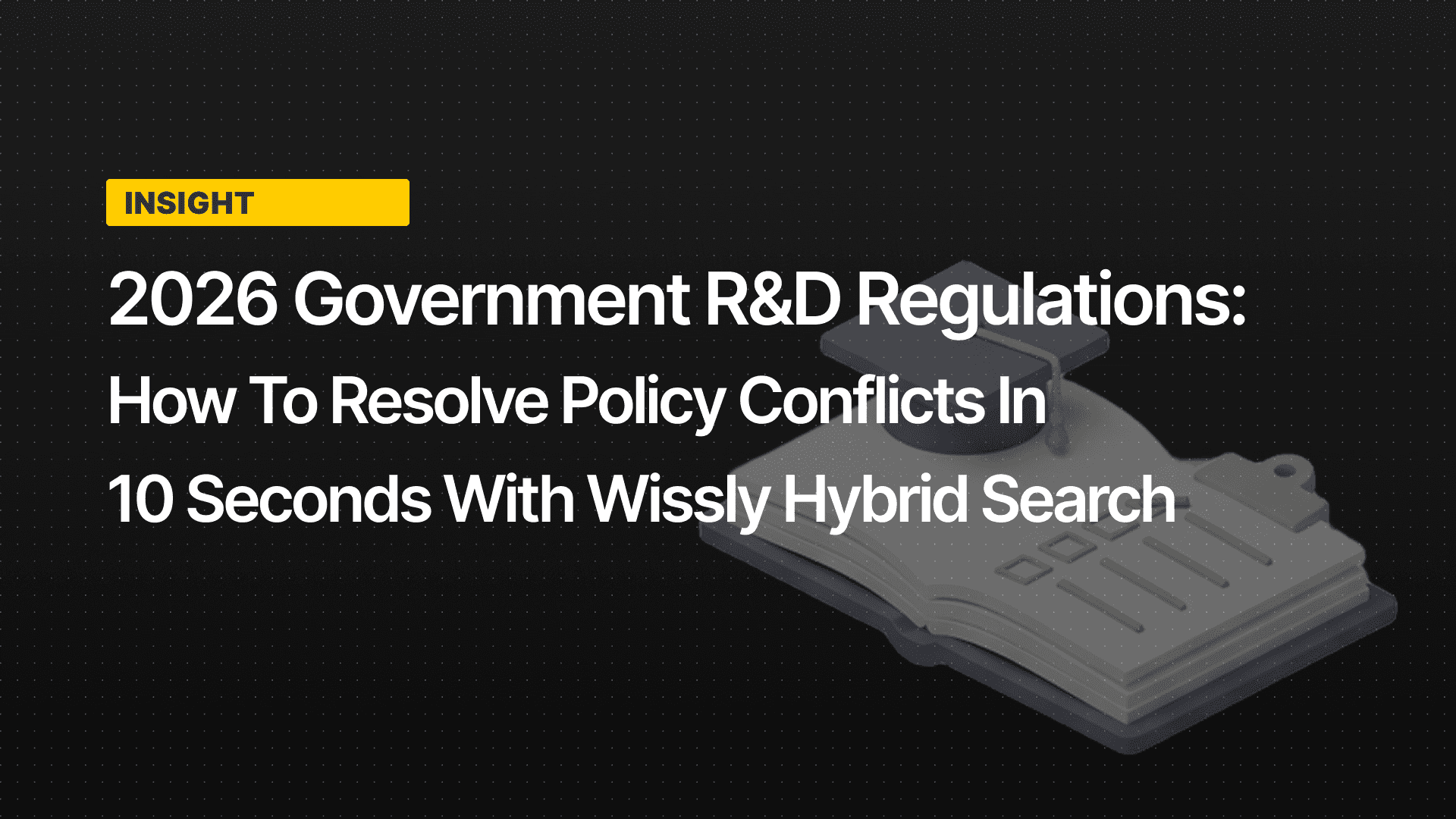Master R&D administration with Wissly. Our Hybrid Search synchronizes 4,000+ internal documents with real-time government regulations in 10 seconds.