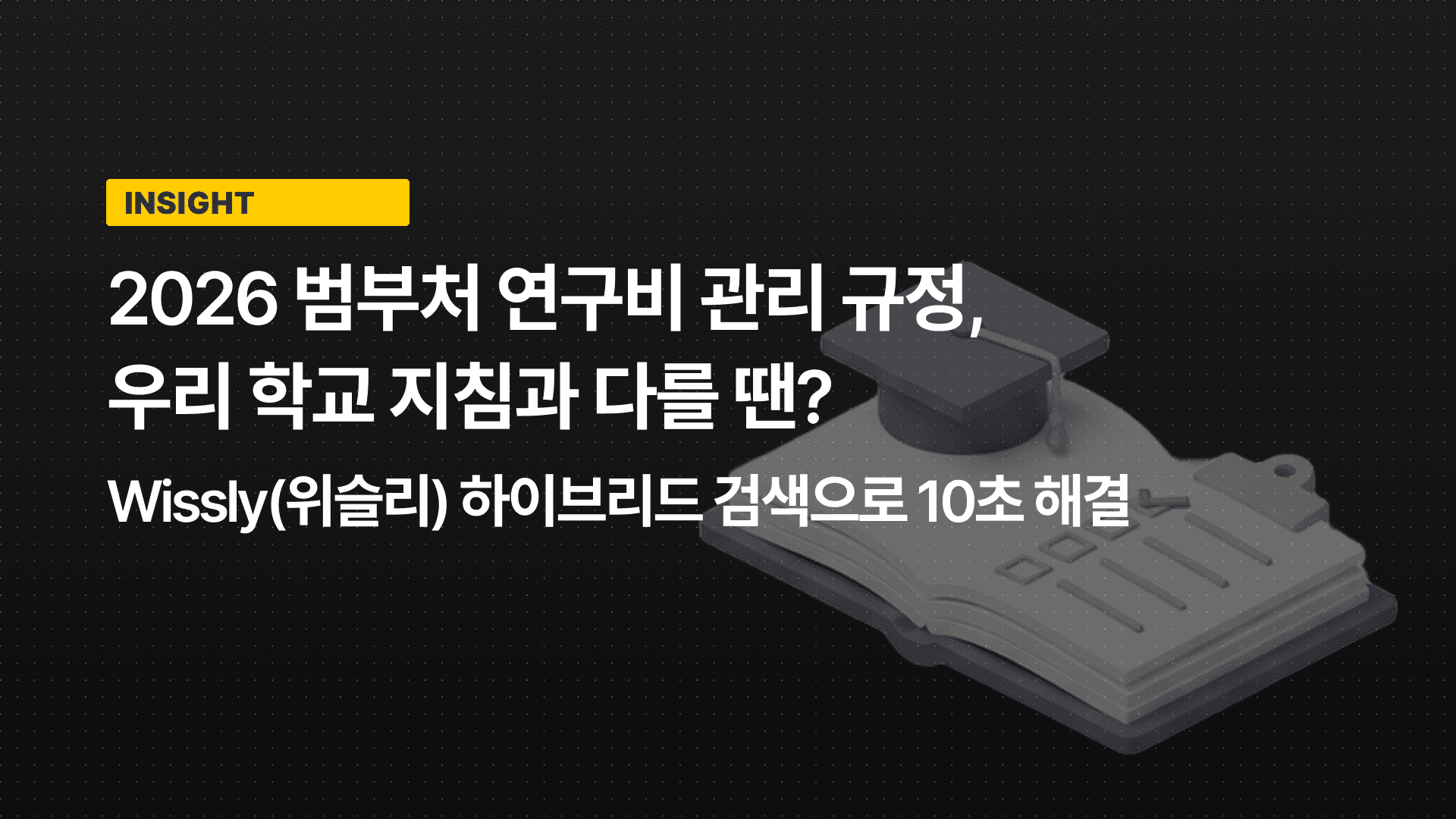 2026 범부처 연구비 관리 규정, 우리 학교 지침과 다를 땐? Wissly(위슬리) AI 하이브리드 검색으로 10초 해결