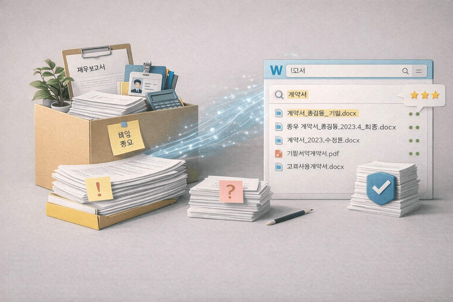 단순 파일명이 아닌, 문서 '내용' 중심의 검색 시대. 의미 기반 검색과 OCR 기술로 업무 효율을 극대화하는 방법을 소개합니다.