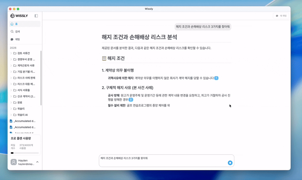Wissly(위슬리)를 활용하면 대량의 문헌을 빠르게 정제하고 판단 구조를 자동으로 확보할 수 있습니다. 이를 통해 출원부터 무효까지 전 구간에서 조사 시간은 단축하고, 판단의 깊이는 더하는 실무 혁신이 가능해집니다.