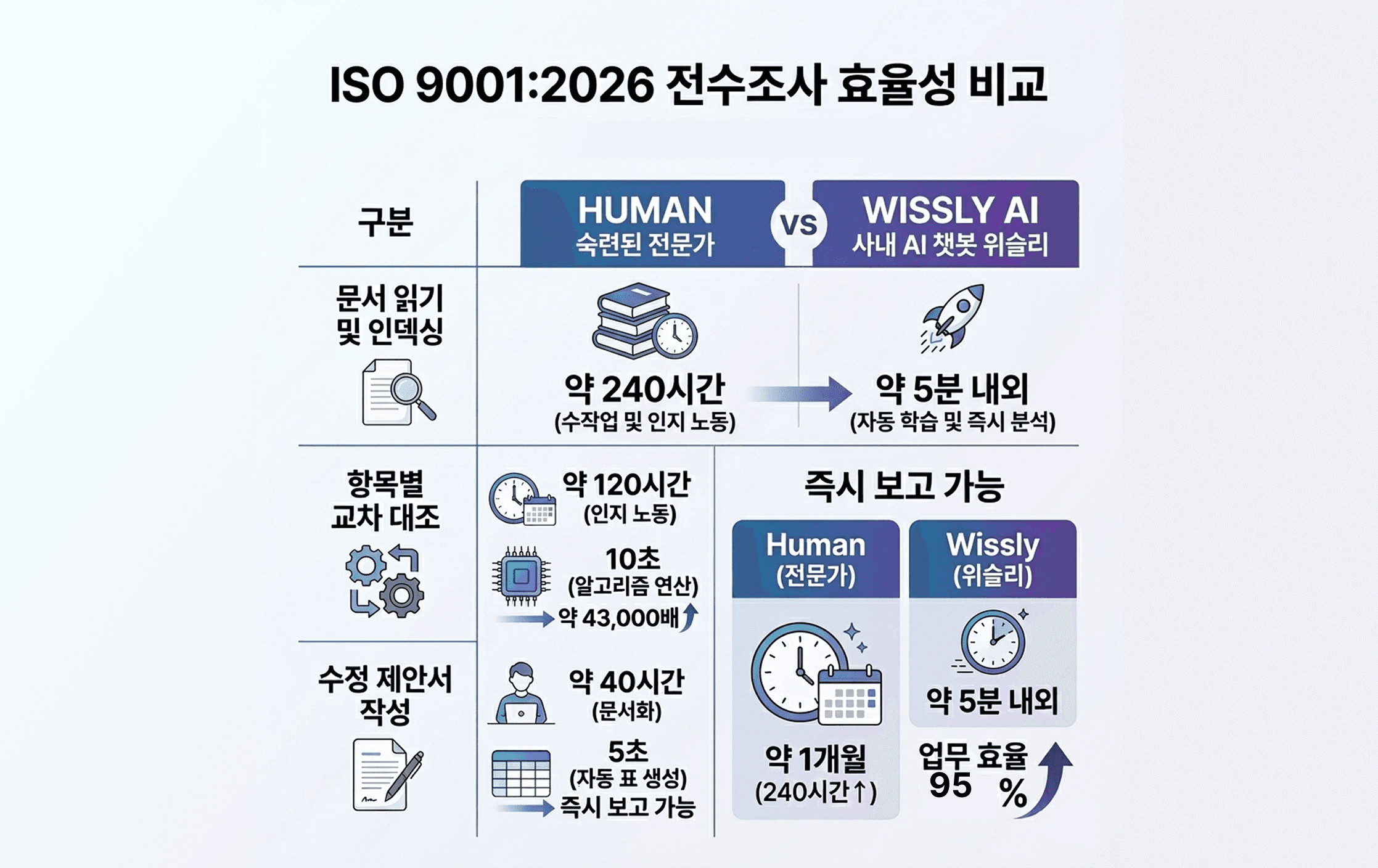 시간은 곧 비용: 전수조사 소요 시간 비교 [인력vs 위슬리(wissly)]